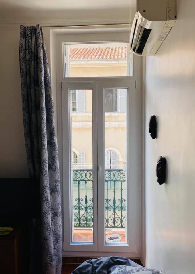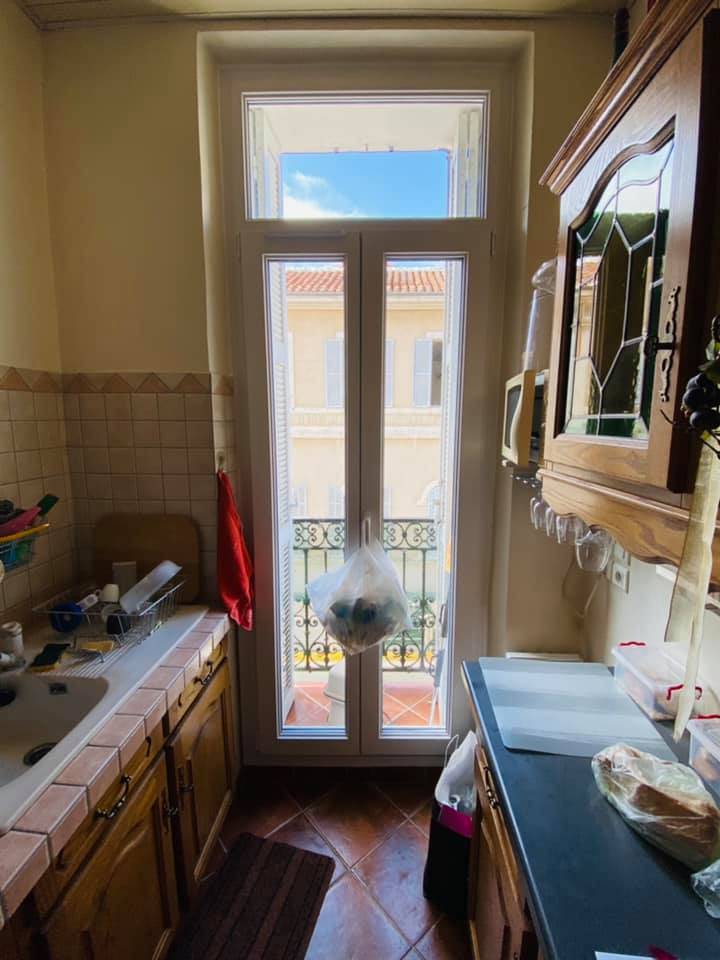Pose de grands châssis portes fenêtres en PVC blanc à Marseille dans un immeuble du 5ème arrondissement